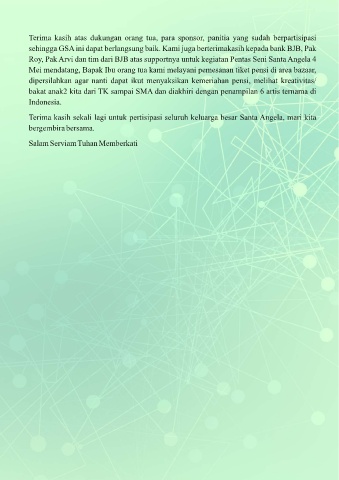 Terima kasih sekali lagi untuk pertisipasi seluruh keluarga besar Santa Angela, mari kita